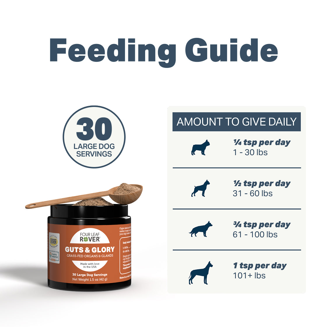 | 76-100 lbs | 1 1/2 tsp daily |