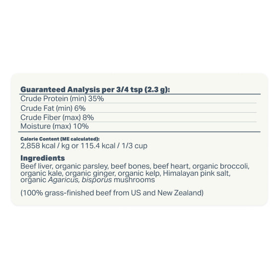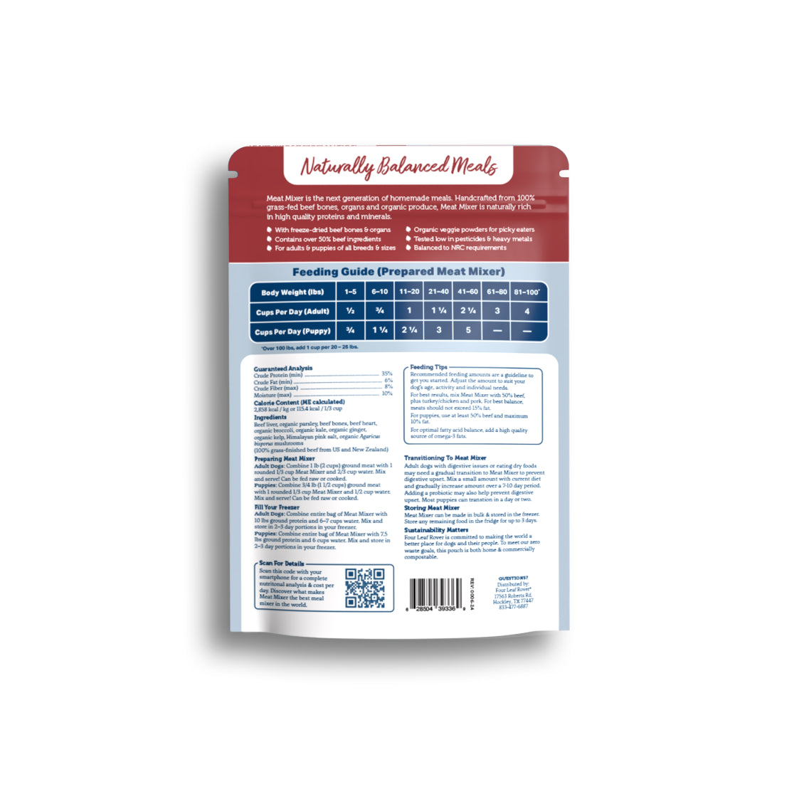 When mixed as directed, Meat Mixer meets or exceeds AAFCO nutritional requirements. 100% Whole Foods. No synthetic vitamins.