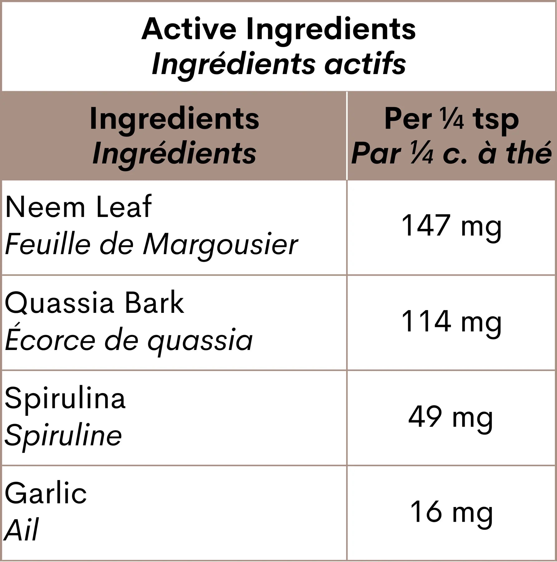 Ingredients: Neem Leaf, Quassia Bark, Spirulina, and Garlic.