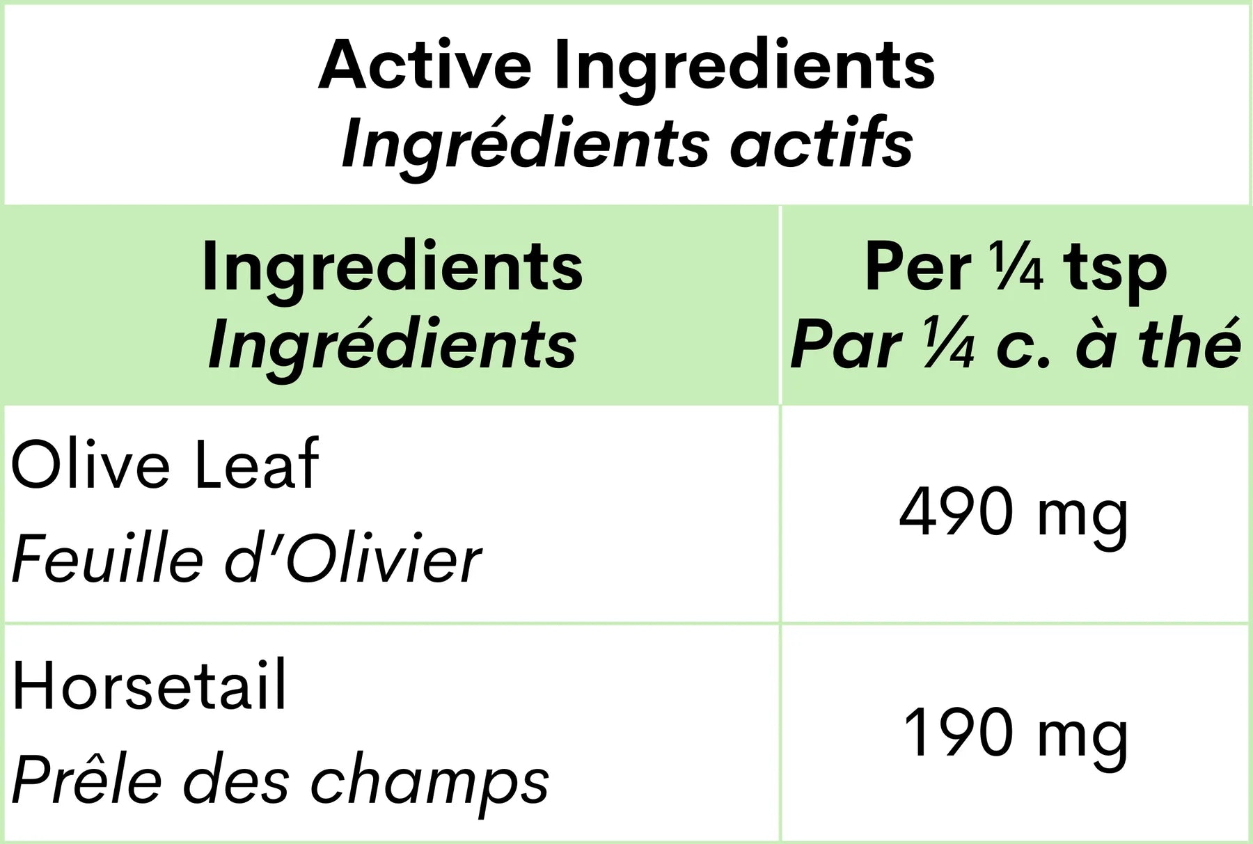 Ingredients: Olive Leaf and Horsetail.